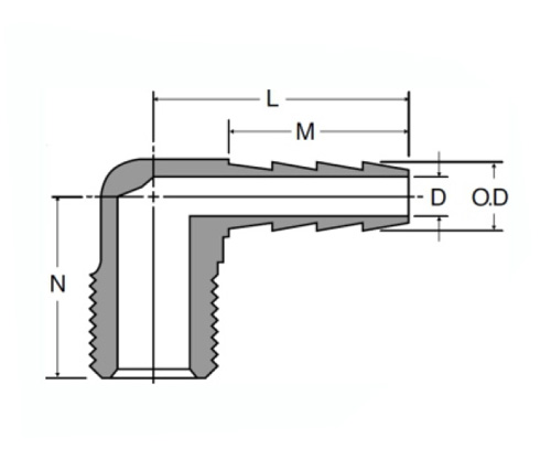 CXXIX Hose Barb XC ° cubito ad masculum pipe