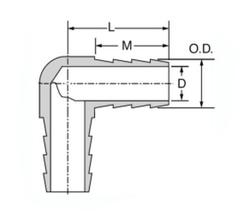 CXXII Aeris Hose Barb decet XC ° cubito
